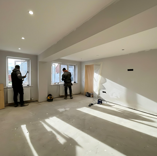 To create a bright and inviting atmosphere, we installed patio doors that provide seamless access to the rear gardens. Additionally, we incorporated three velux windows, flooding the kitchen and dining area with natural light. This renovation not only expanded the living space but also enhanced the overall ambiance of the family home.