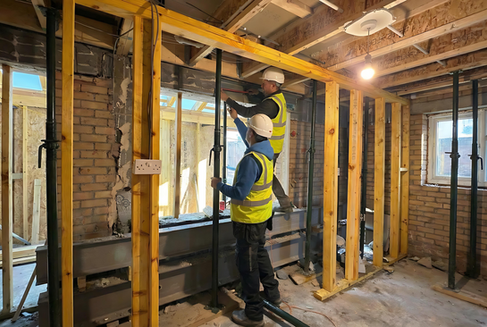 The plans for the rear and side extension required extensive steel works. This was essential to support the corner of the house, allowing for the removal of structural elements. Once the steel framework was in place, we carefully dismantled the existing brick walls, paving the way for a new, expansive layout.