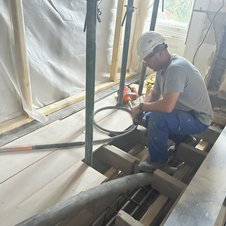 The bespoke steel was created and shuttered in place after carefully propping the structural load. A cement pump was utilized to propel the cement through the property to the shuttered steel at the base of the newly formed opening. This was then allowed to set for a period of seven days before we progressed to the vertical steel beams connected to the overhead steel beam. This was essential for completing the robust structural support.
